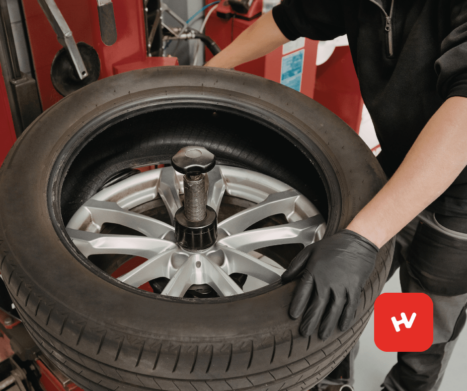 - Montagem dos pneus novos nas rodas.